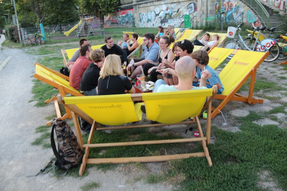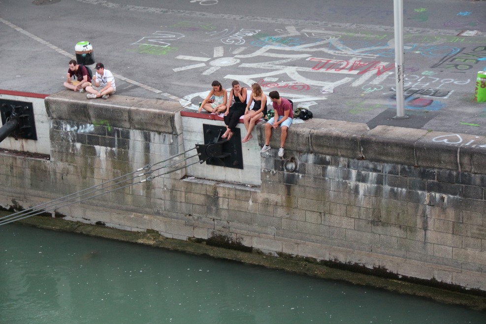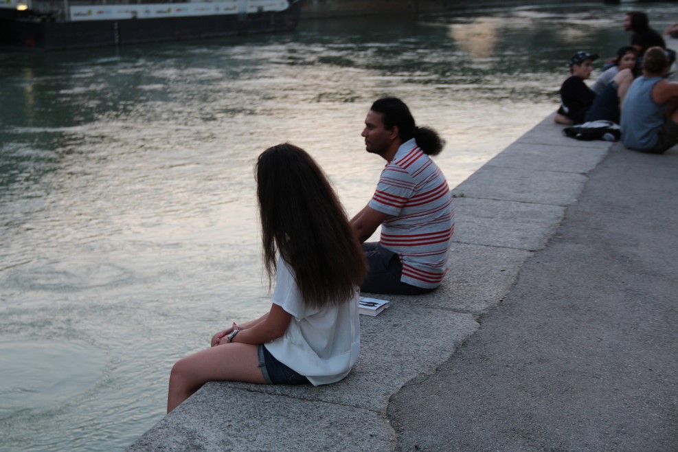 Вдоль побережья попадаются небольшие кафешки. Люди сидят рядом с ними на насыпном песке и созерцают неторопливую водную гладь реки: