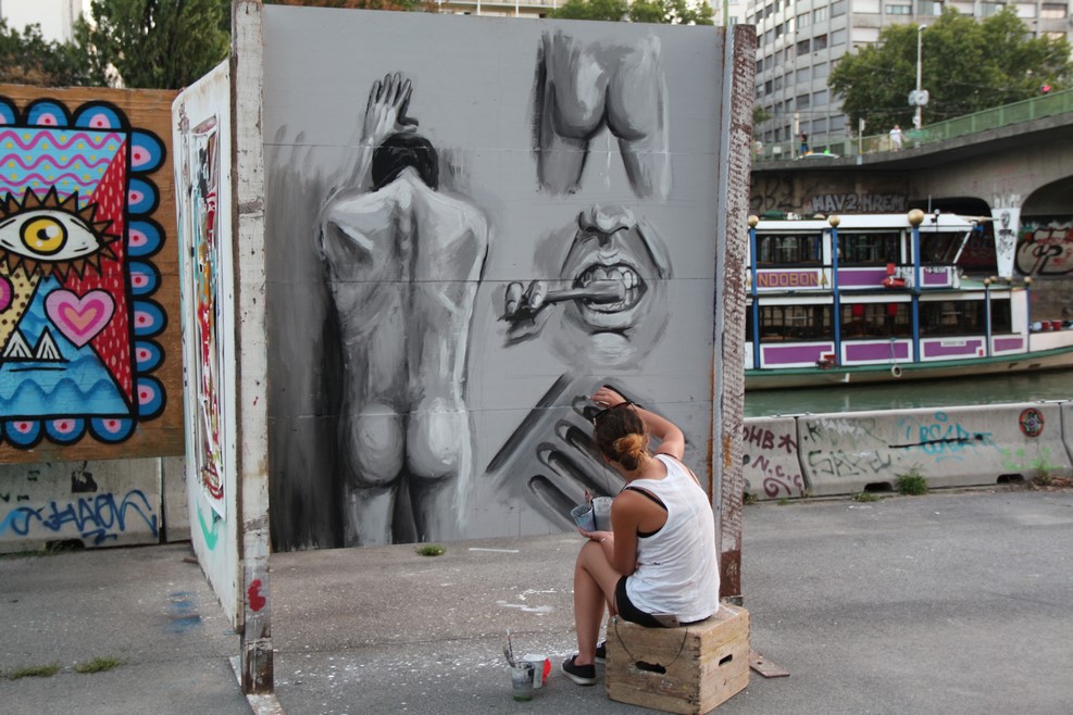 В парке есть старое венское колесо обозрения (сооружённое в 1896—1897 годах). Олька на входе к колесу:
