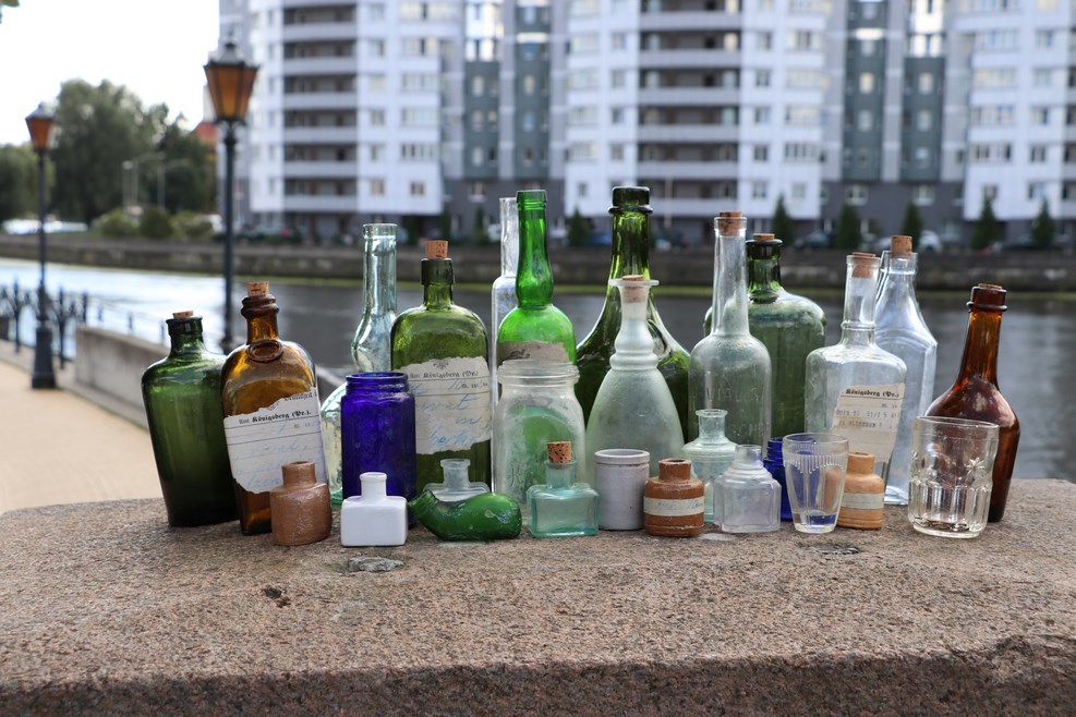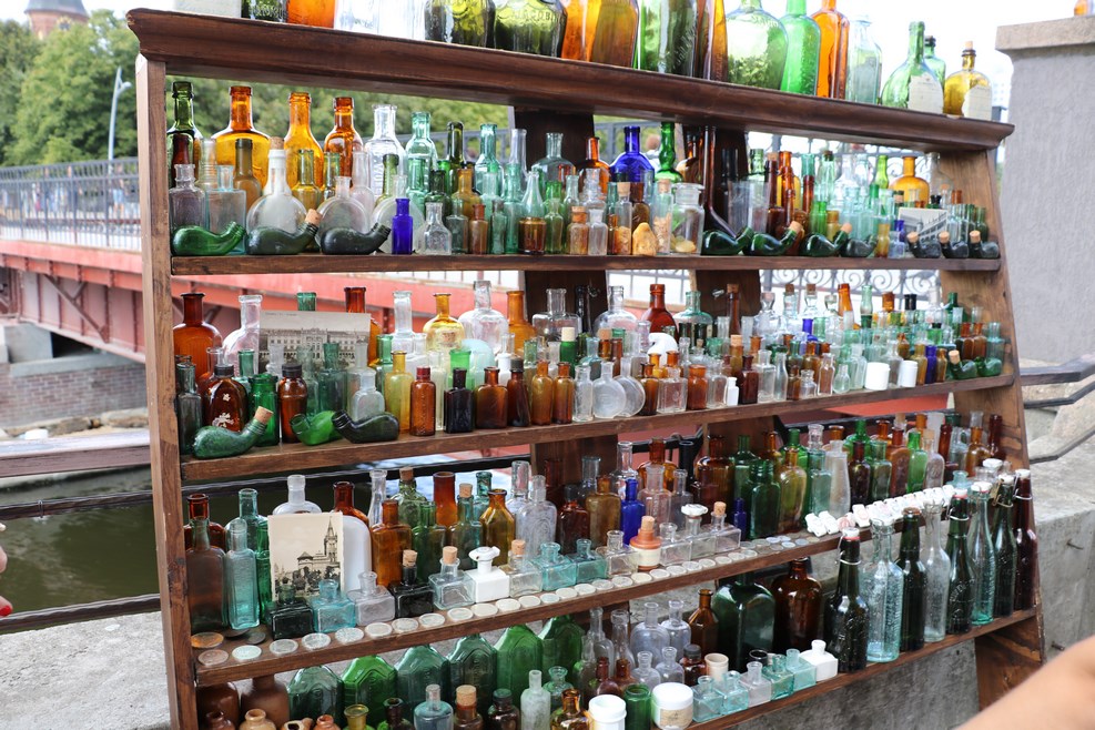 На другом берегу полным ходом идет продажа бутылочек, оставшихся еще со времен, когда городом владели немцы:
