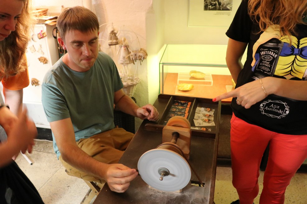 В конце экспозиции можно попробовать самому обработать янтарь: