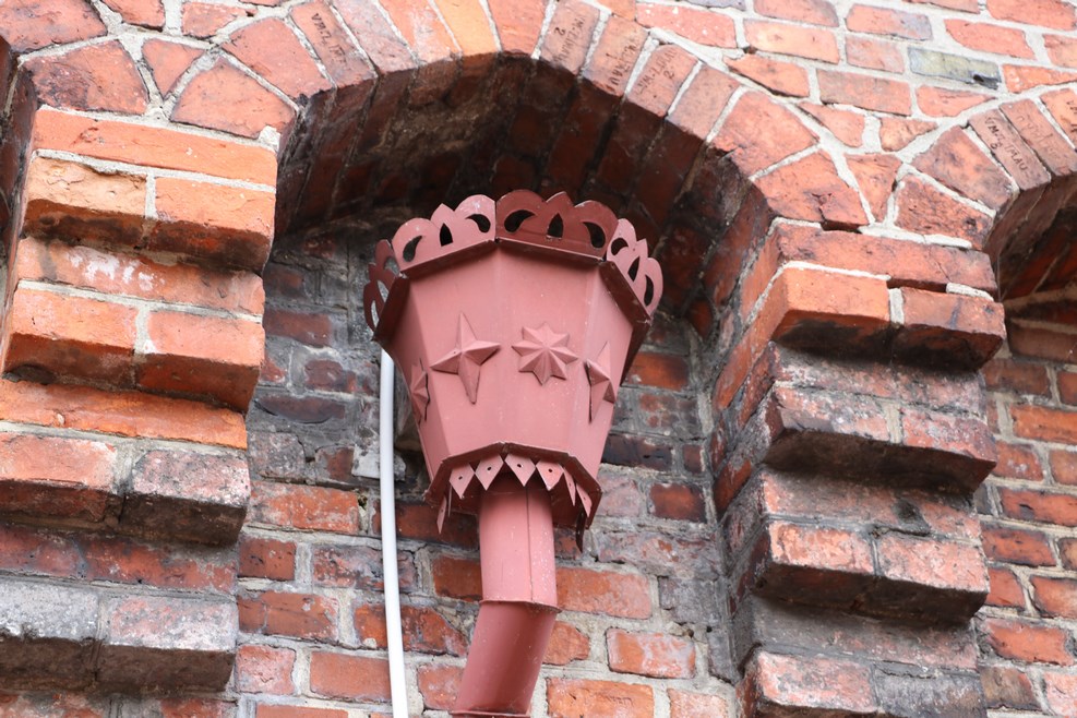 После осмотра мы поднимаемся на крышу музея. Сточная труба: