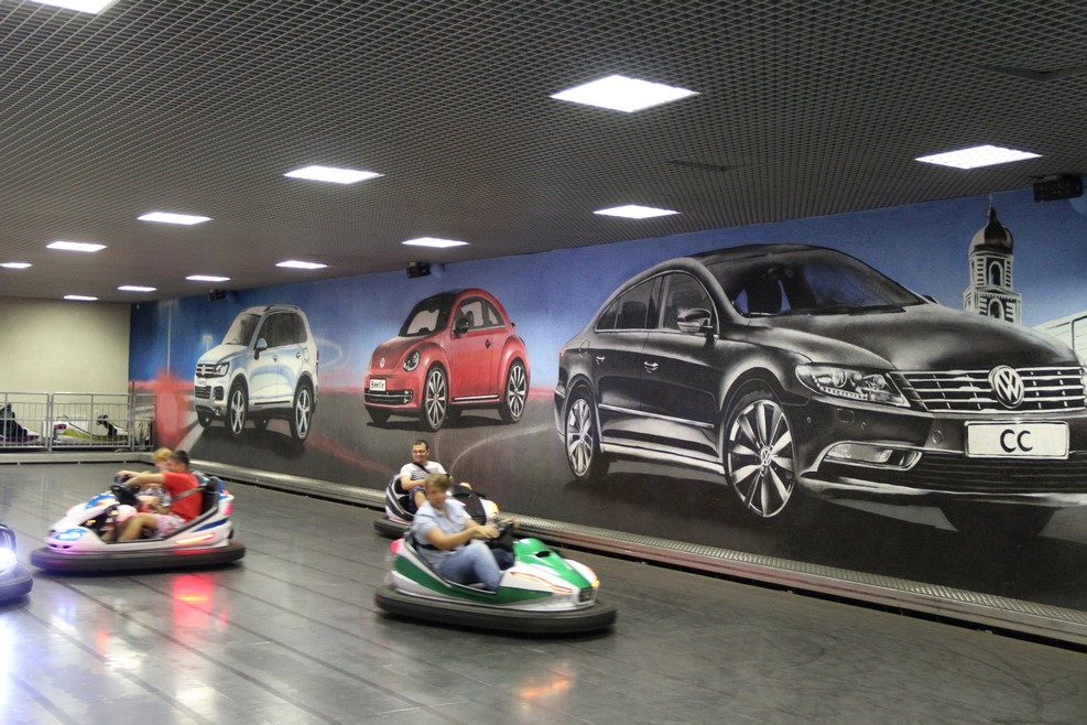 Покатались на аттракционах. Первым делом, как положено настоящим джеттаводам, поехали кататься на машинках: