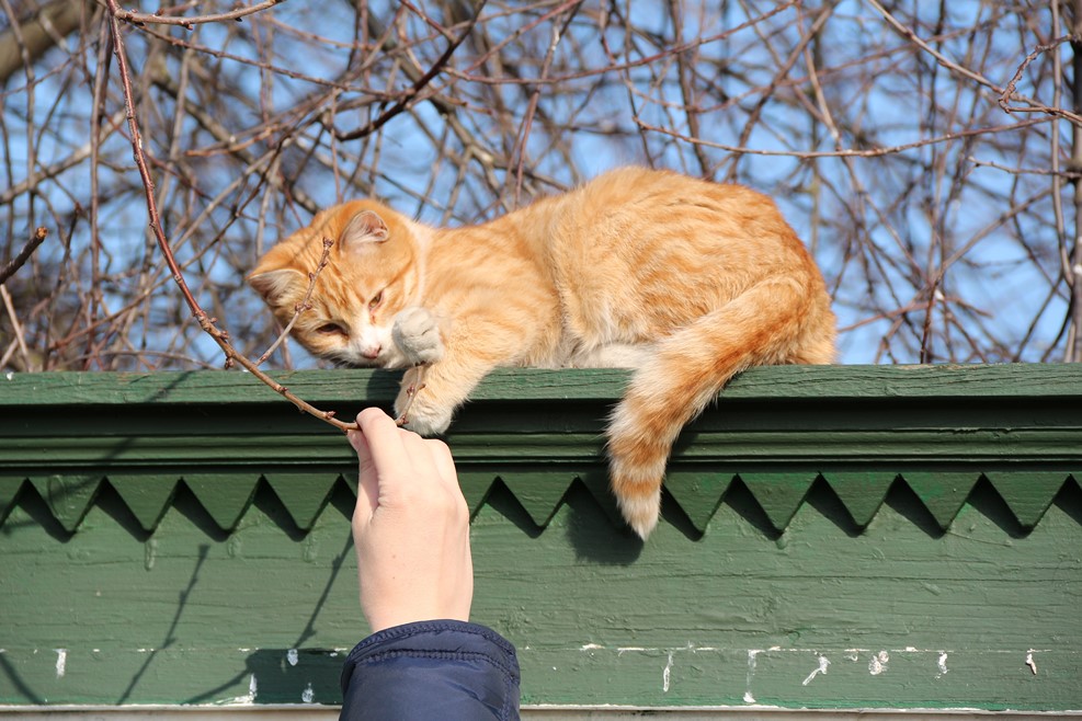 В городе множество кошек. Некоторые на контакт идут неохотно: