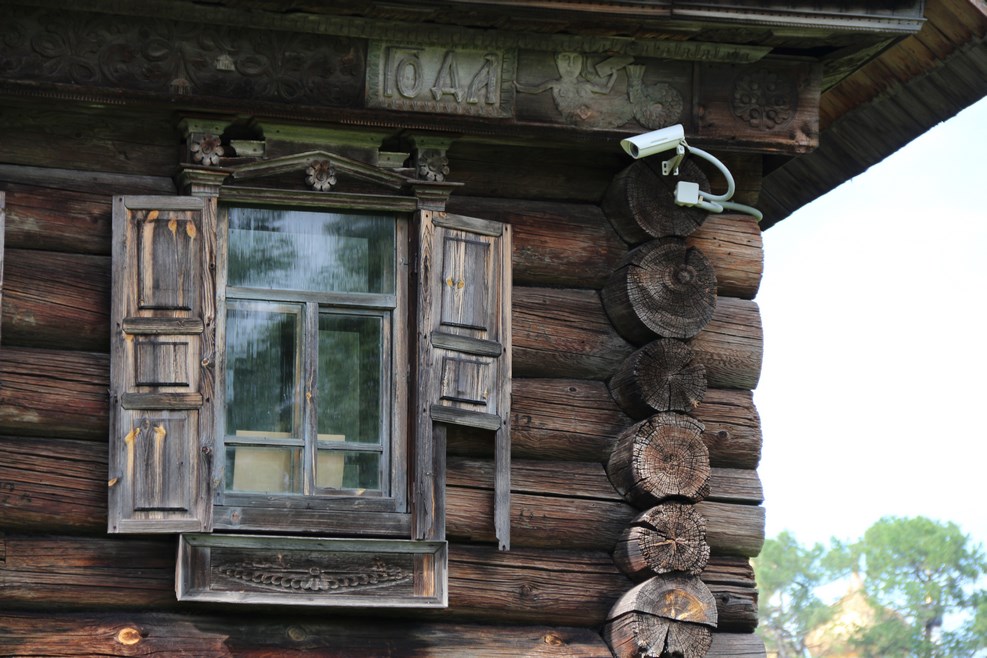 Необходимый атрибут дома наших предков – камера на фасаде, что бы следить за коровами, которые пасутся на лугу около дома: