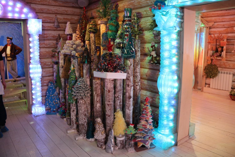 Одна из комнат внутри терема с всевозможными новогодними елками: