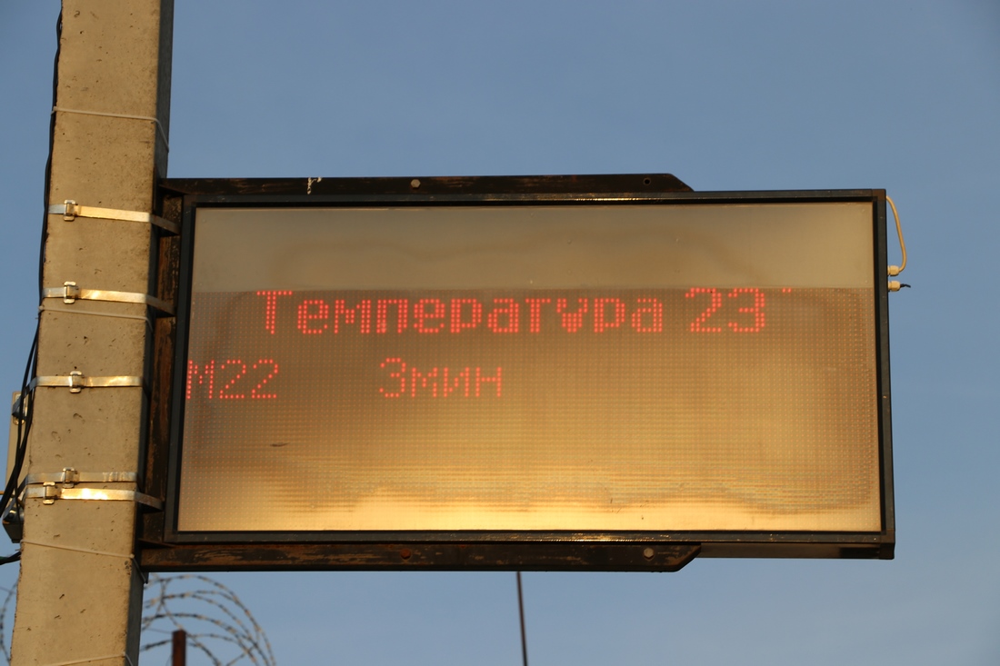 На остановке табло показывает через сколько приедет следующий автобус: