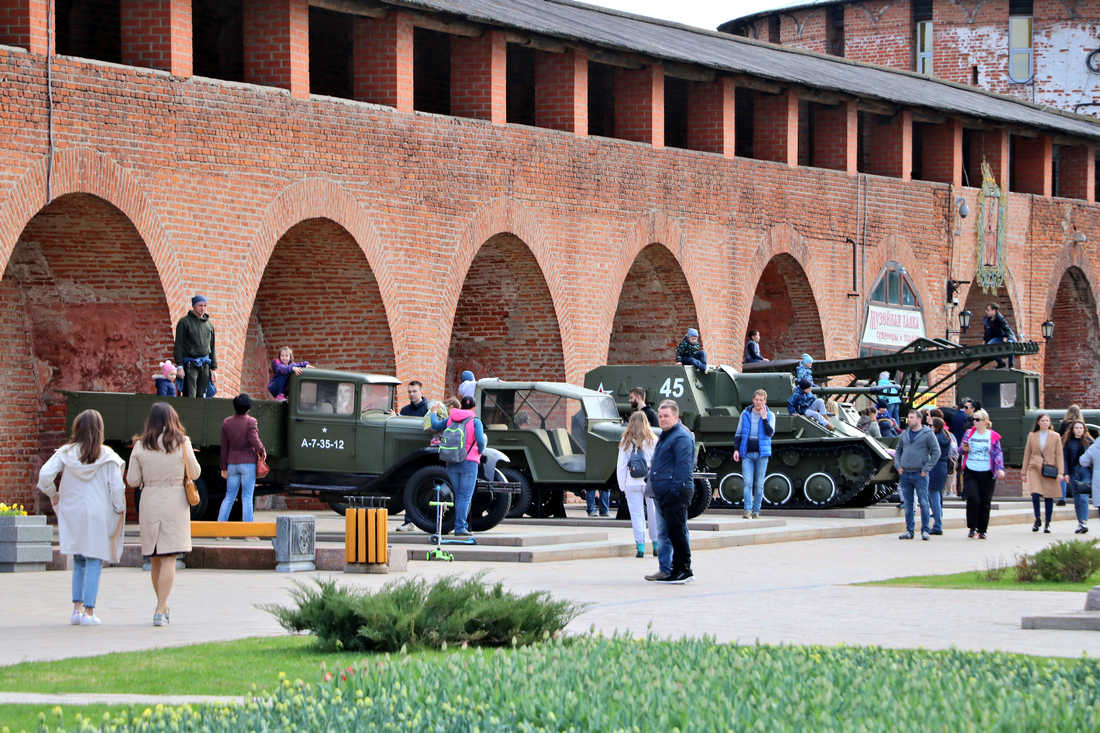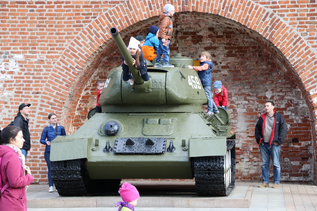 В Кремле выставлено большое количество военной техники времен ВОВ, которую так любят дети: