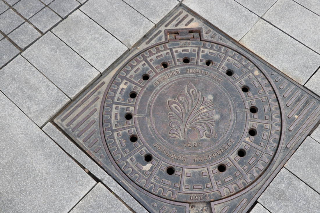 Из Кремля иду на прогулочную улицу, которая, судя по люку, называется «Большая покровская»: