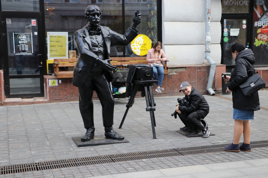 Вдоль прогулочной улицы, на радость пешеходов, встречается много скульптур: