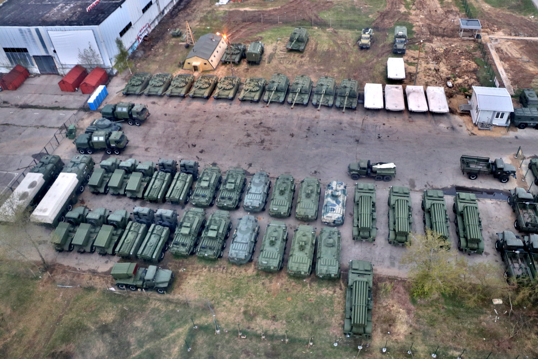 И не только. Сверху можно увидеть технику, которая тут приготовлена к параду на 9 мая. В том числе слева, между Камазами, можно увидеть легендарный танк T-34: