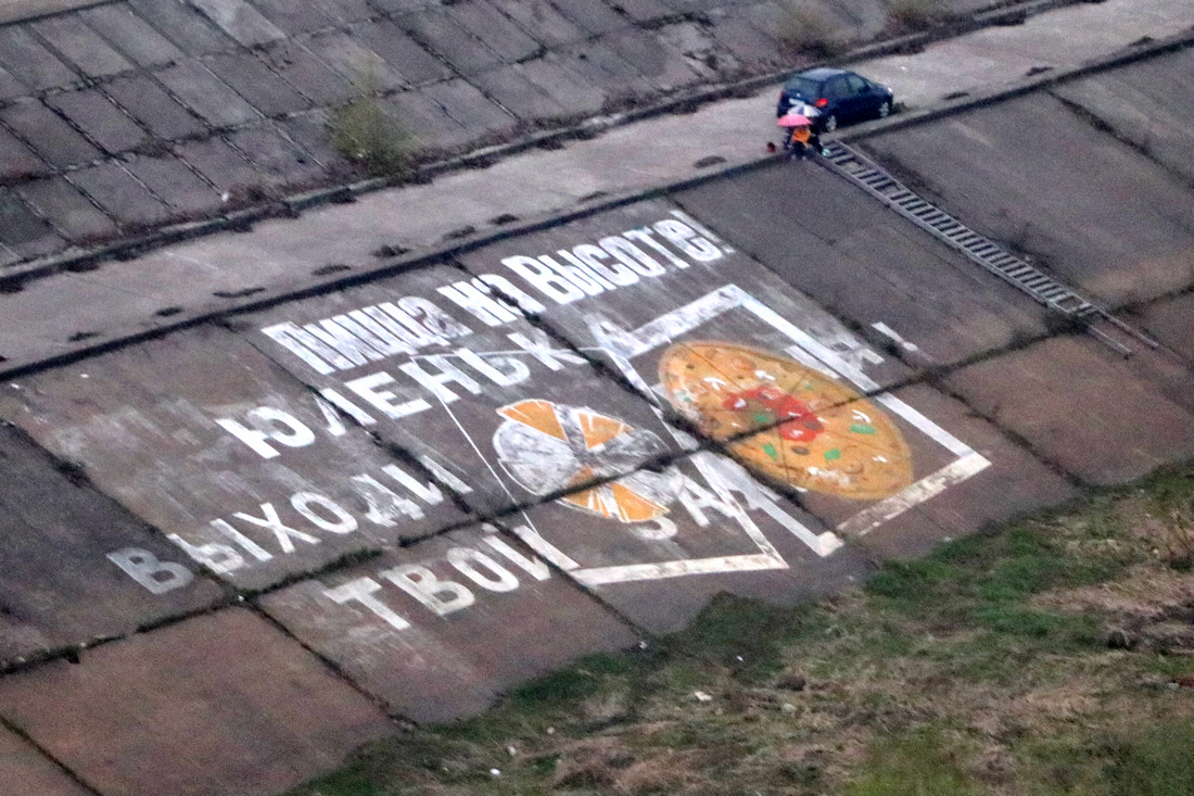 Тут кто-то оригинально сделал предложение, но его замазали рекламой пиццы: