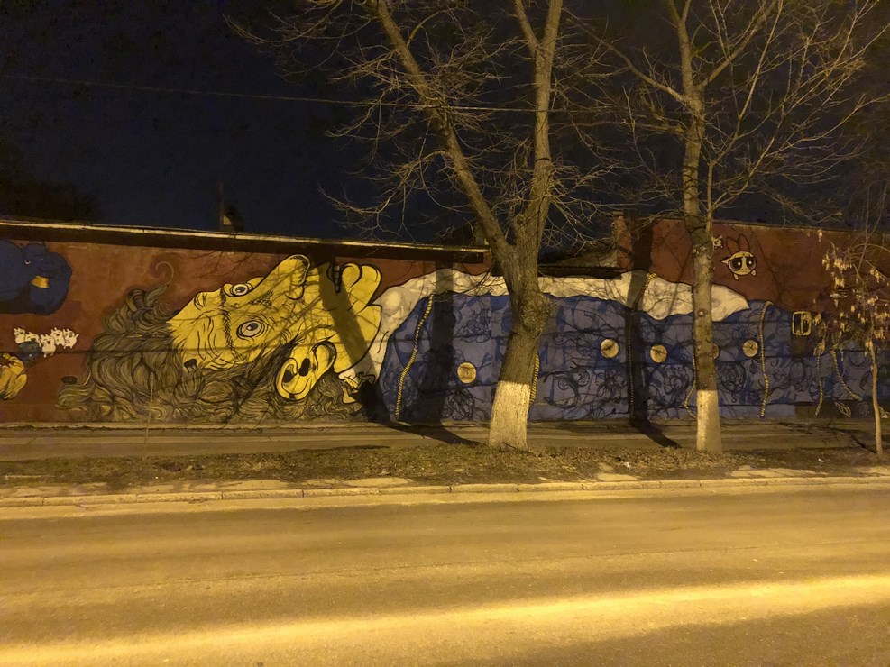 В этот день мы гуляли по городу весь день до самой ночи. Граффити: