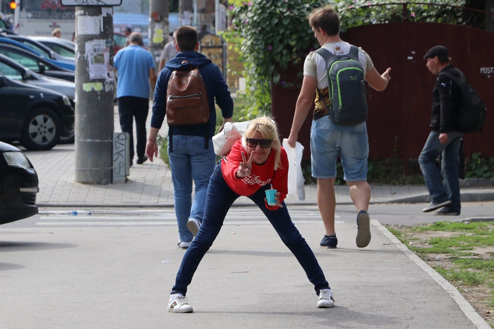 Поймали спортивную женскую команду (по футболу?) и молодоженов: