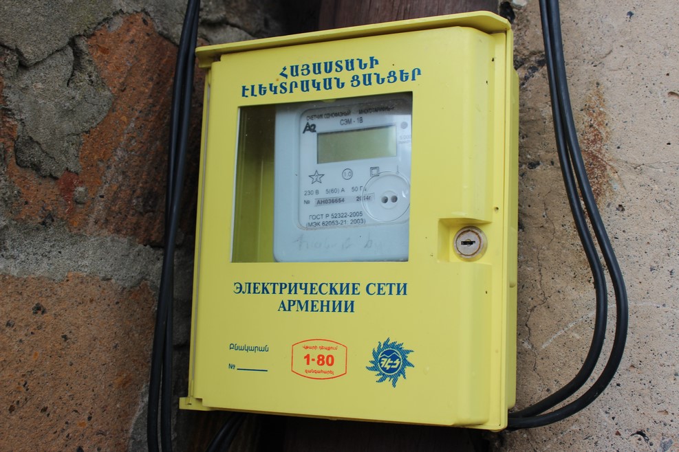 Кстати, обратите внимание на желтую коробочку справа. Это электрический счетчик. В частном секторе в Армении они расположены прямо на улице, вне дома и двора: