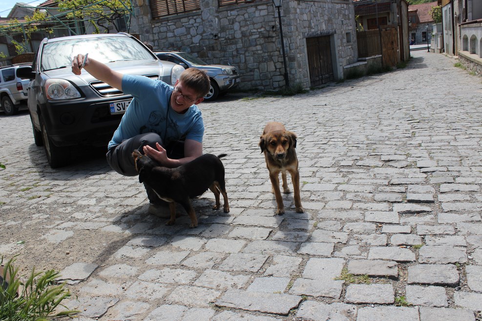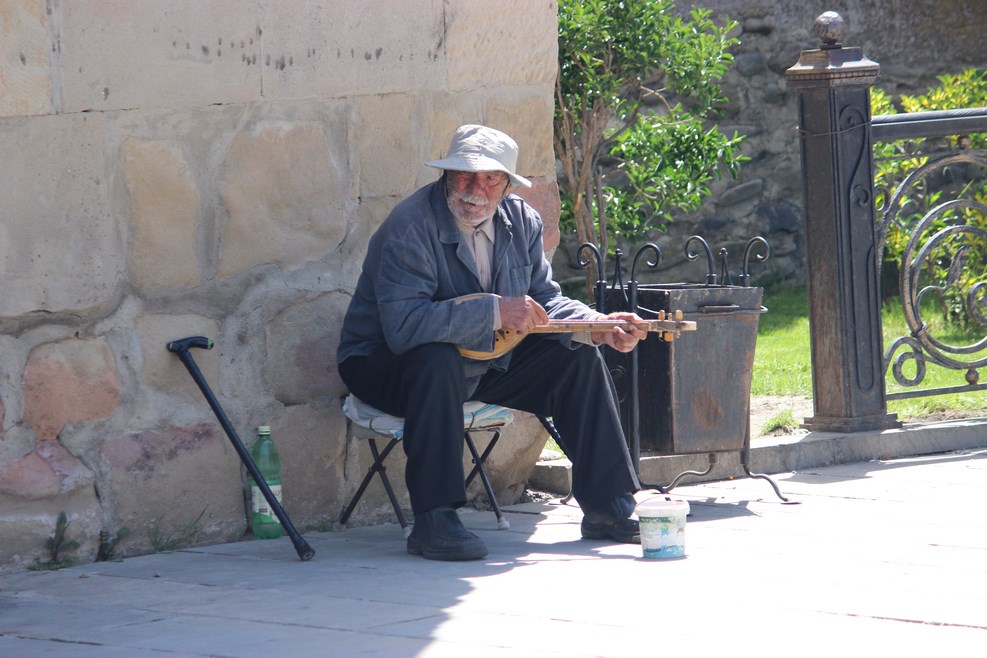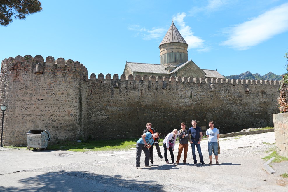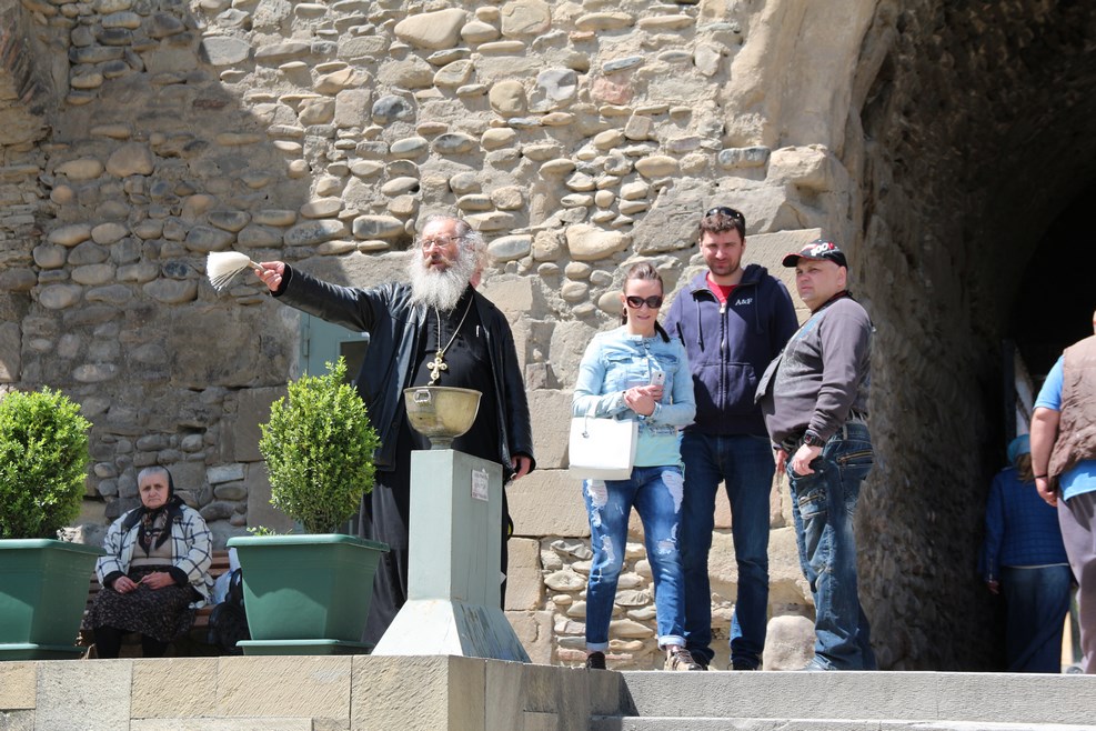 Джеттаводы в Мцхете на фоне Кафедрального собора Светицховели: