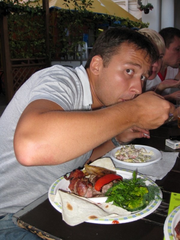 После посещения парка пошли в ресторанчик, а там обязательный шашлычек’c: