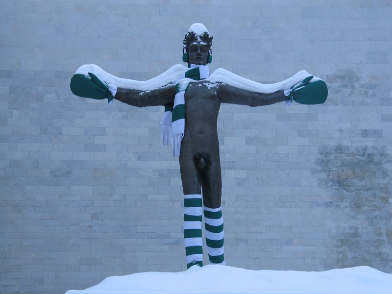 Рядом с церквью стоит скульптура с поразительными анотомическими подробностями. Сразу стало интересно как мама ответит на вопрос дочки, которую ведет в церковь: «Мама, мама, а что это такое между ног?»: