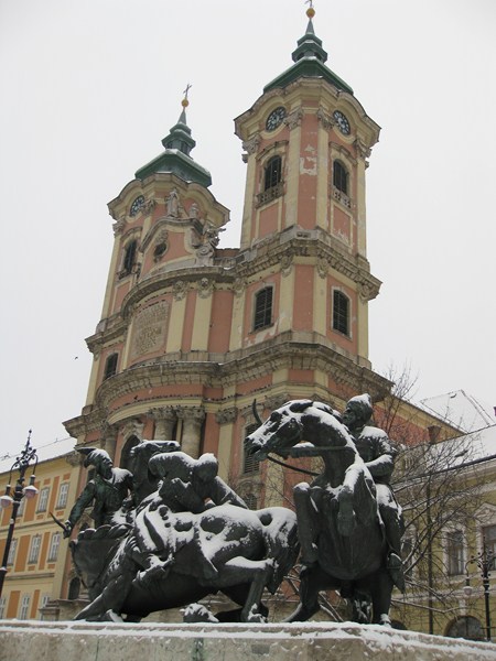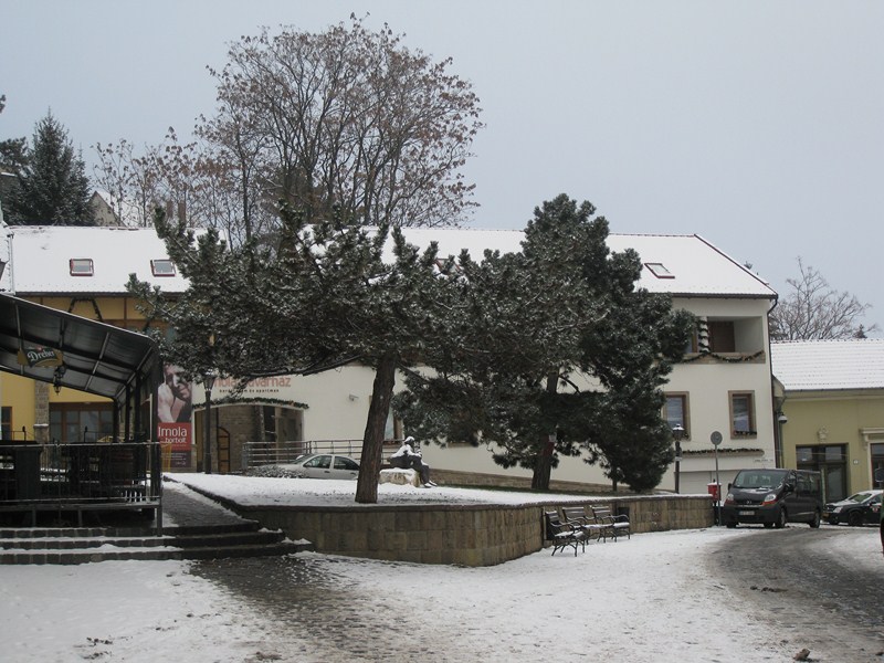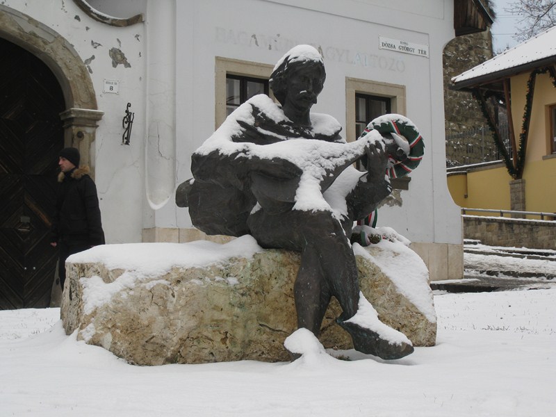 На памятнике висит венок. Таких венков в Венгрии мы видели великое множество: