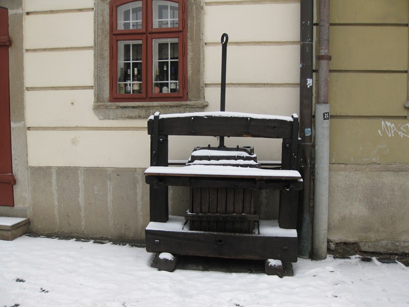 Город славен своими винодельческими традициями, поэтому на улицах выставлено много старинных прессов: