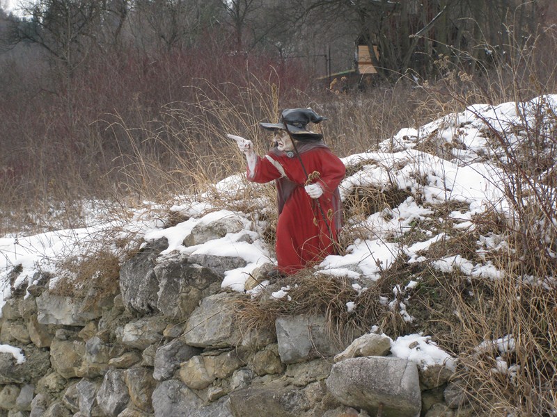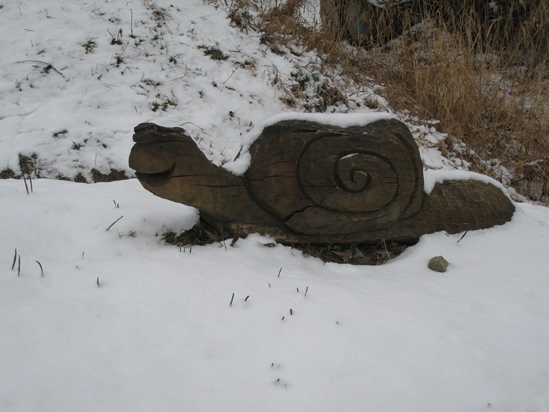 В деревне много фигурок вырезанных из дерева: