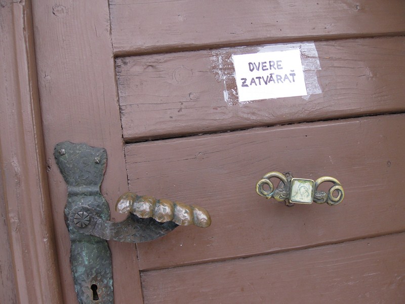 В местной церкви красивые ручки (на двери надпись «закрывайте двери»):