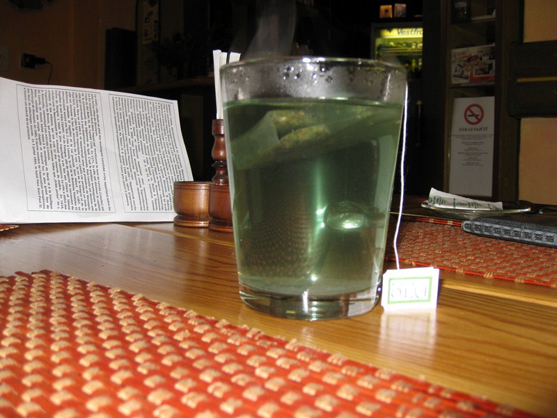 Закончили день в кафешке. Олька пила чай настоянный на горных травах: