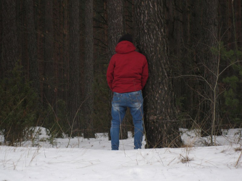 Привал. Леха сразу пошел поливать белорусский многовековой лес: