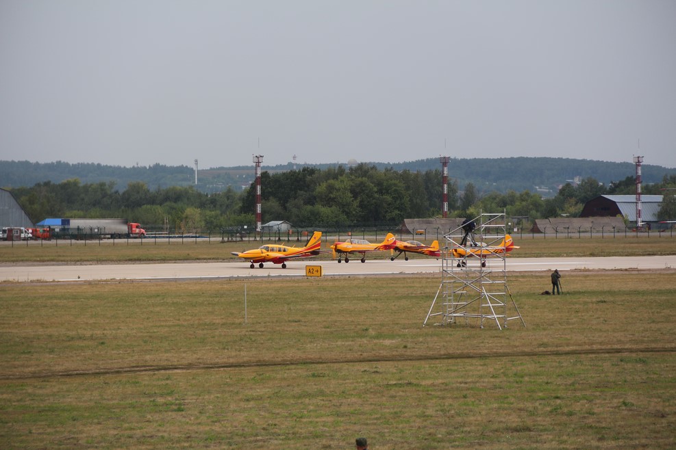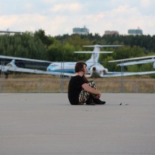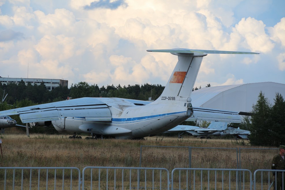 Пошли на выход. На аэродроме поблизости стоит куча старых самолетов. Некоторые из них стоят еще с флагом СССР: