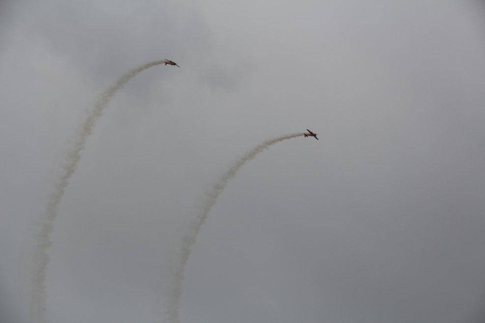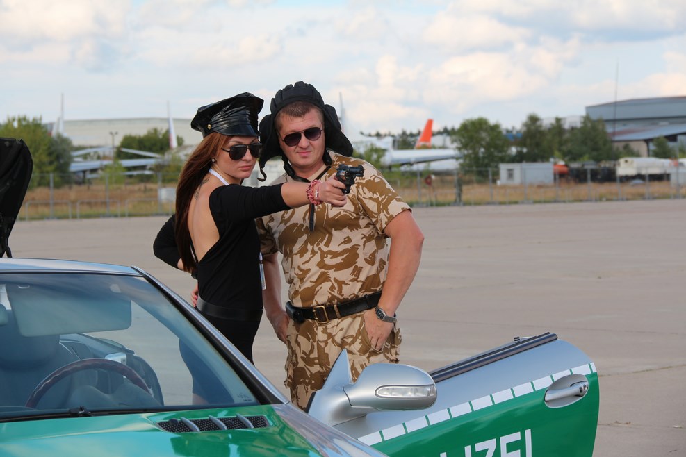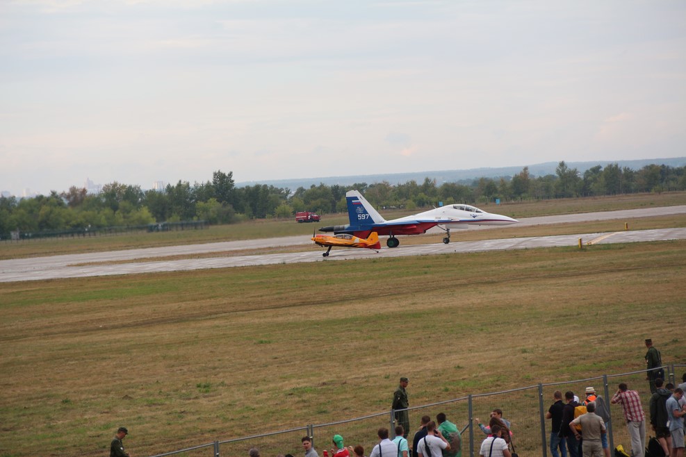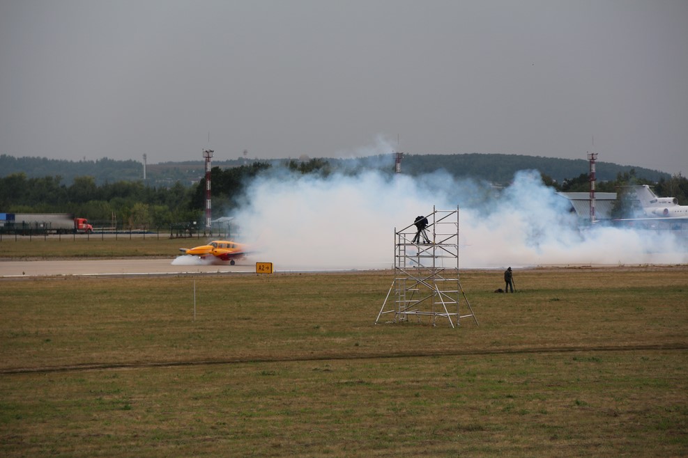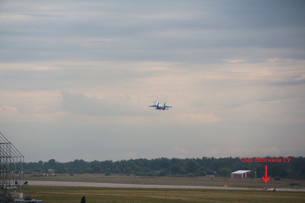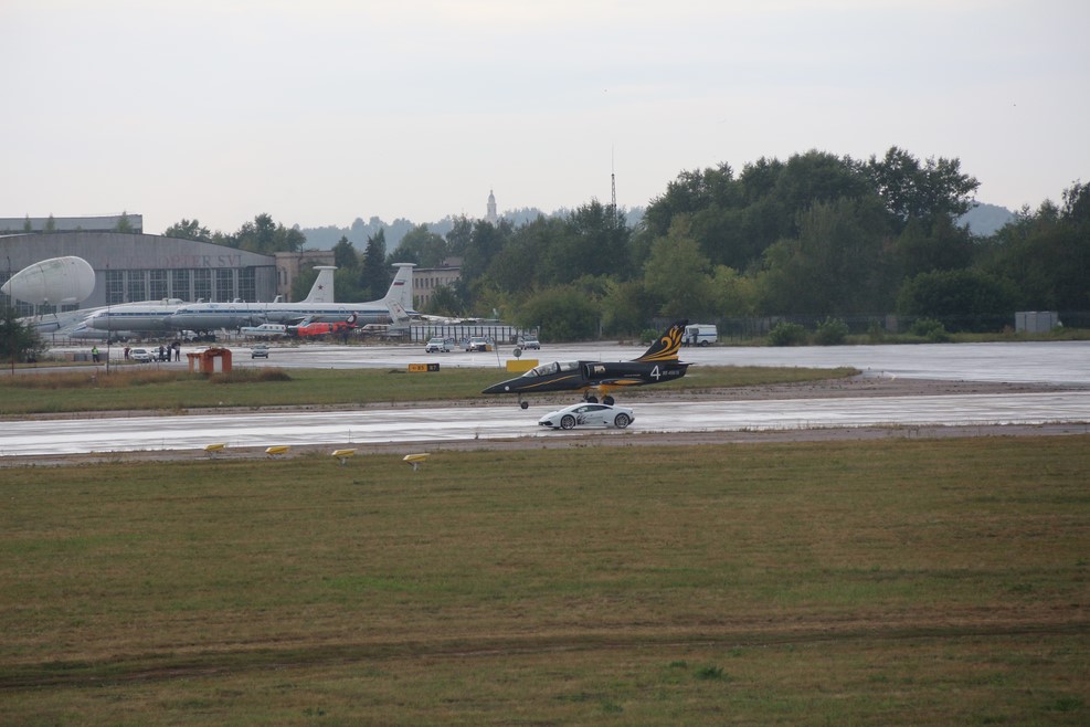 Потом самолет взлетал и делал разворот. В это время машина проехав участок также возвращалась обратно. Выигрывает то, кто на обратном пути быстрее пересечет финишную черту. В соревновании СУ-34 против автомобиля, автомобиль проиграл: