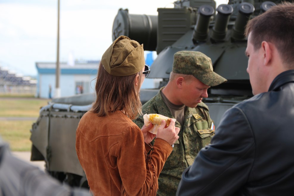 После выступления летчиков и танкистов пошли смотреть выставку. Конструктора: