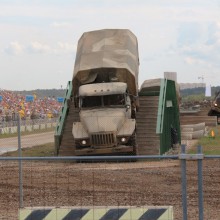 Первым делом мы направились на танкодром, где начиналось шоу «Непобедимые и легендарные»:
