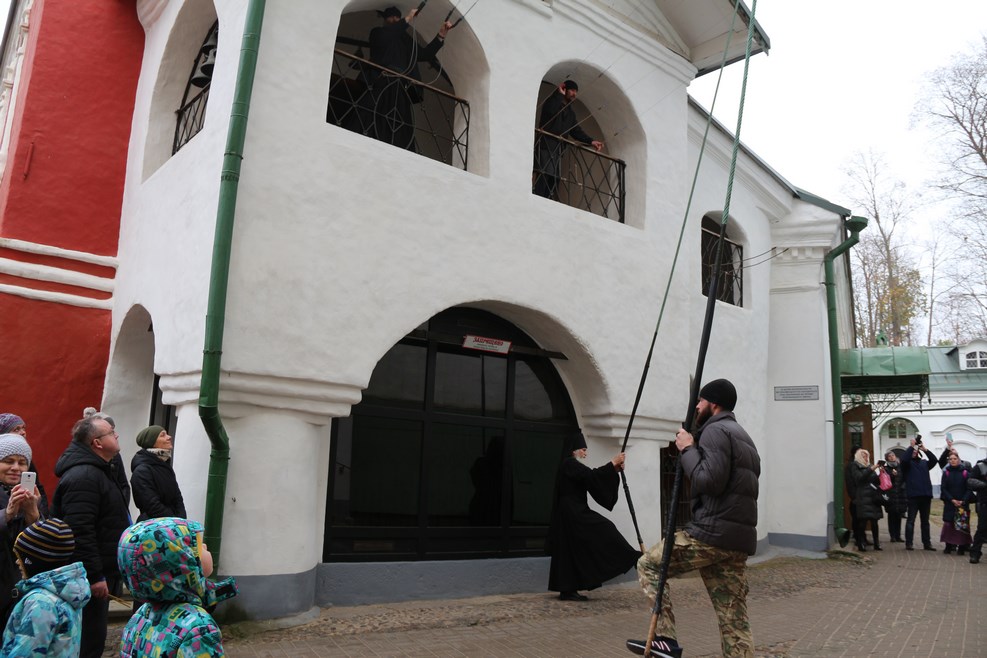 Потом начался звон колоколов. Звонарей было четыре человека. Двое вверху и двое внизу: