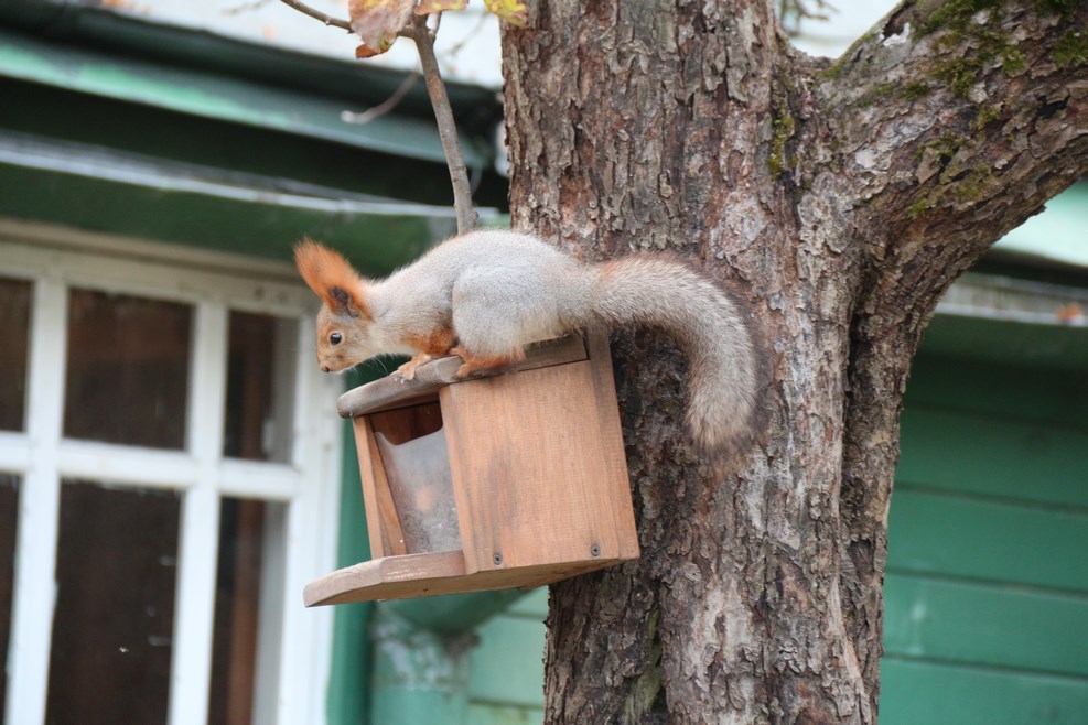 Вот, радостно бежит белка: