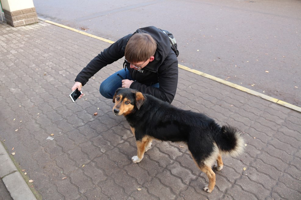 Леша фотографирует собаку: