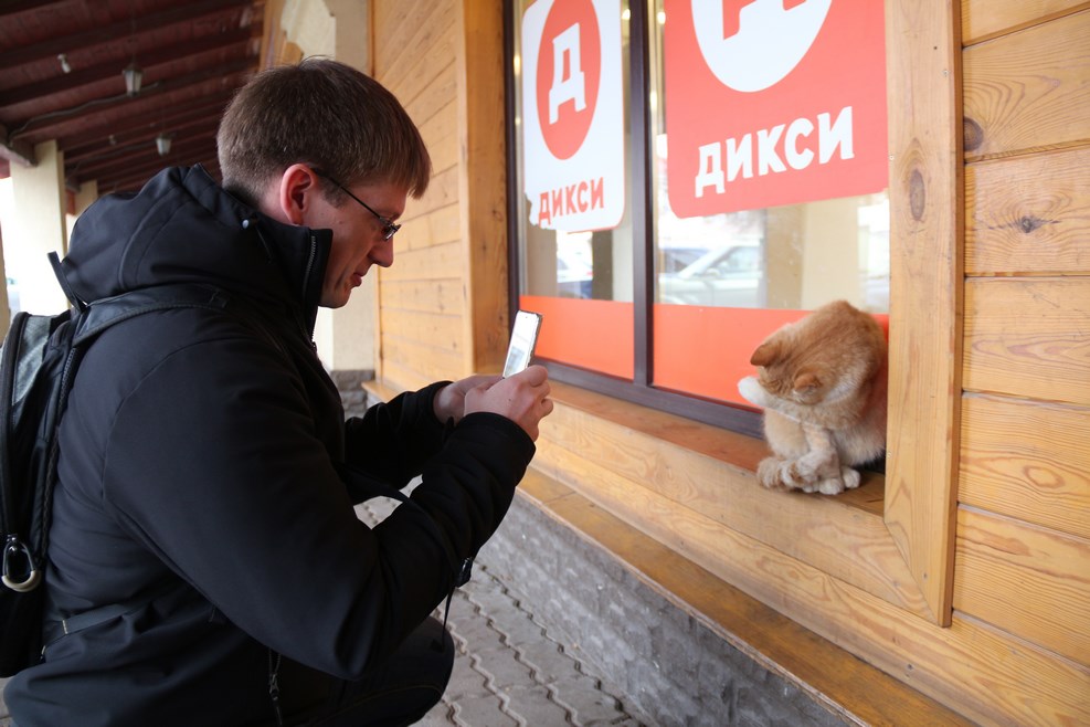 Леша фотографирует кота. Кот застеснялся: