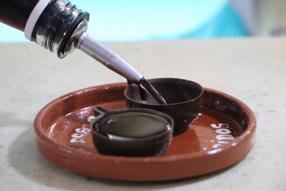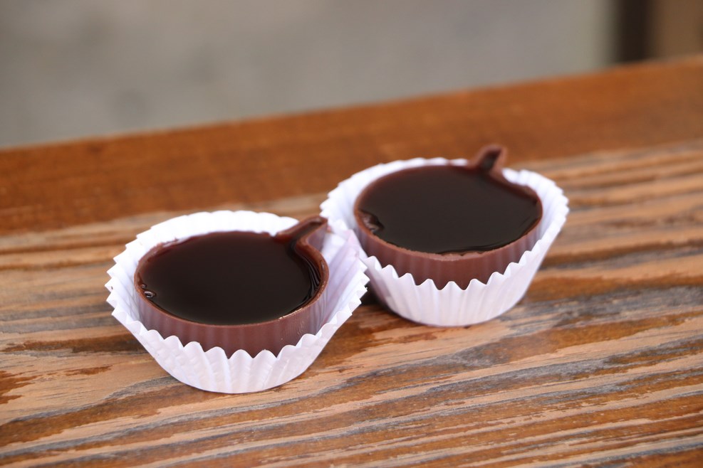 А еще чуть дальше нам предложили дегустацию из шоколадных стаканчиков, которыми сразу можно закусить: