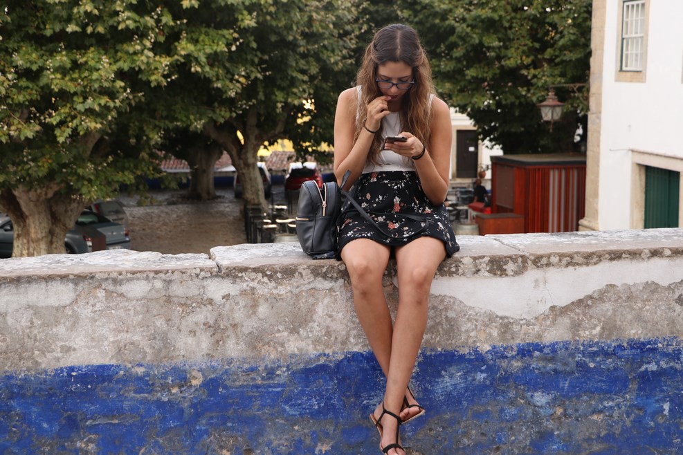 Девушка втыкает в мобилку: