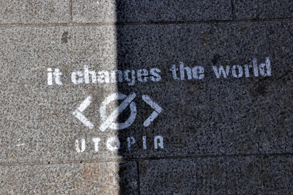 Надпись под ногами (Это меняет мир — утопия):