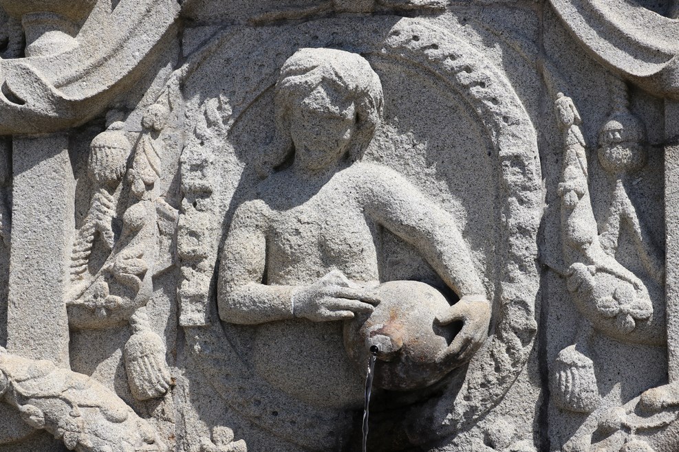 Сначала вроде все как полагается, все логично, вода течет из кувшина. Но скульптор, видимо, в процессе творчества по мере ваяния скульптур все больше и больше уходил в беспробудное пьянство. Тут вода течет уже изо рта коровы: