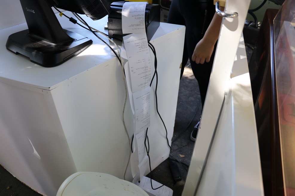 Торговля идет нон-стоп. Народу столько, что кассир не успевает выкидывать чеки: