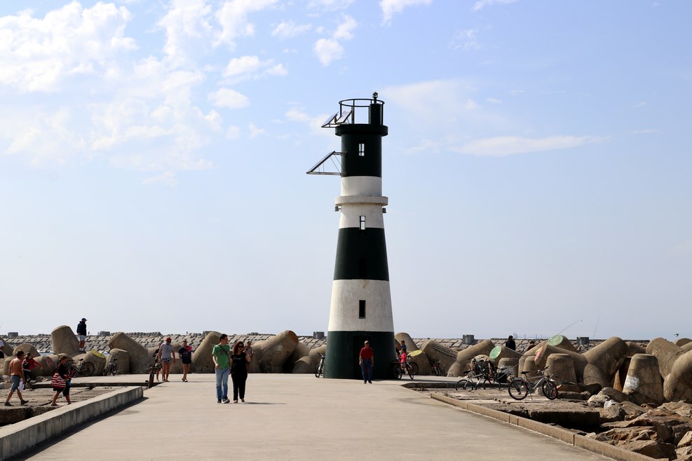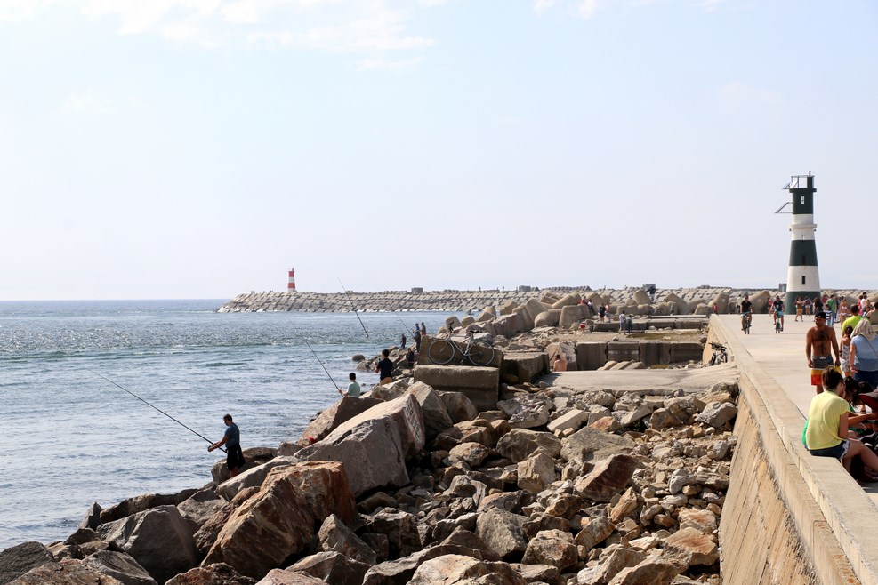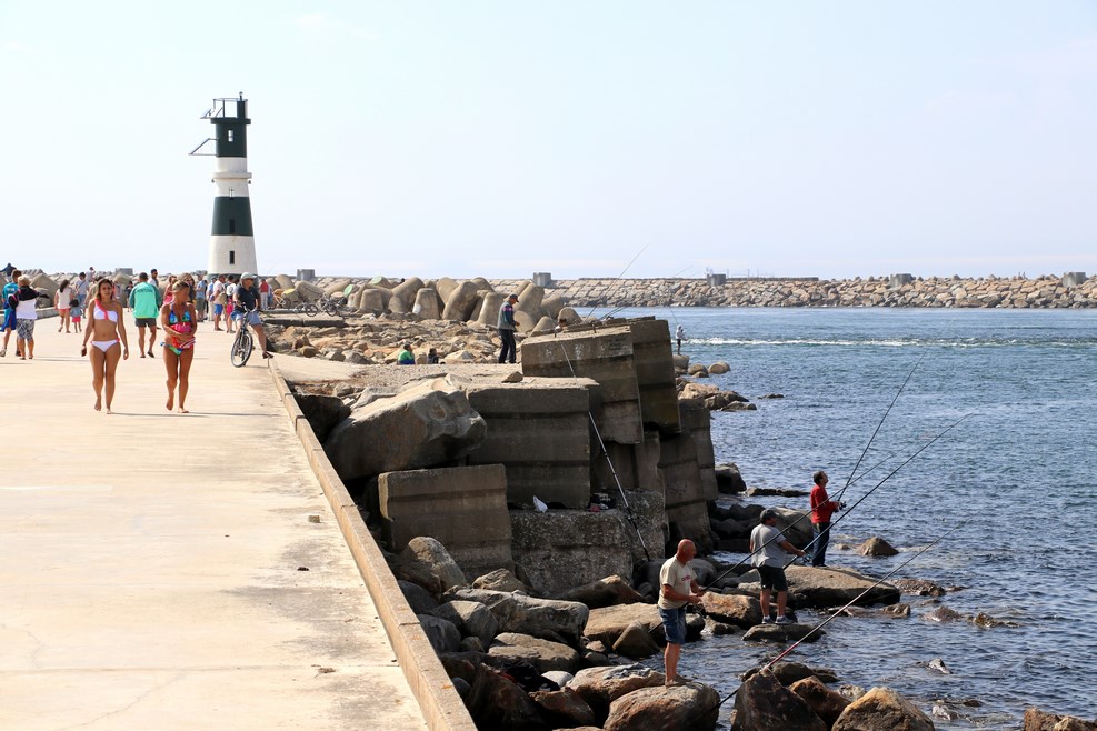 С пляжа на километр в море уходит пирс. Давайте по нему прогуляемся. Справа и слева его оккупировали множество рыбаков: