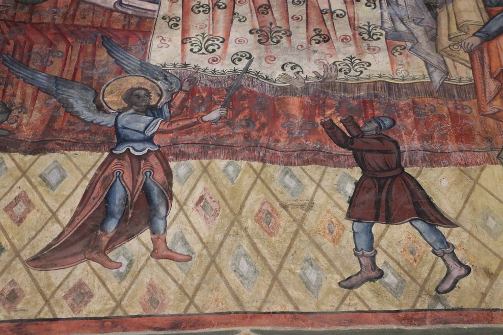 На стенах можно найти довольно жестокие картинки. Вот тут один мужик отрубил только что руки другому мужику: