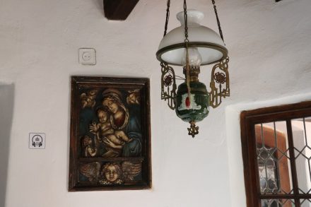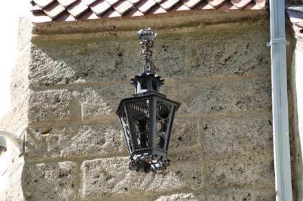 Старый крест около входа. Буквы на нем очень напоминают кириллицу:
