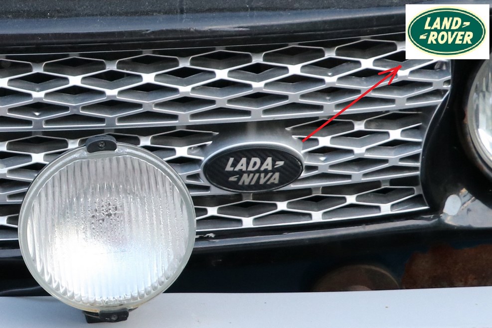 Причем ярлык с названием марки на ней стилизован под «Land Rover»:
