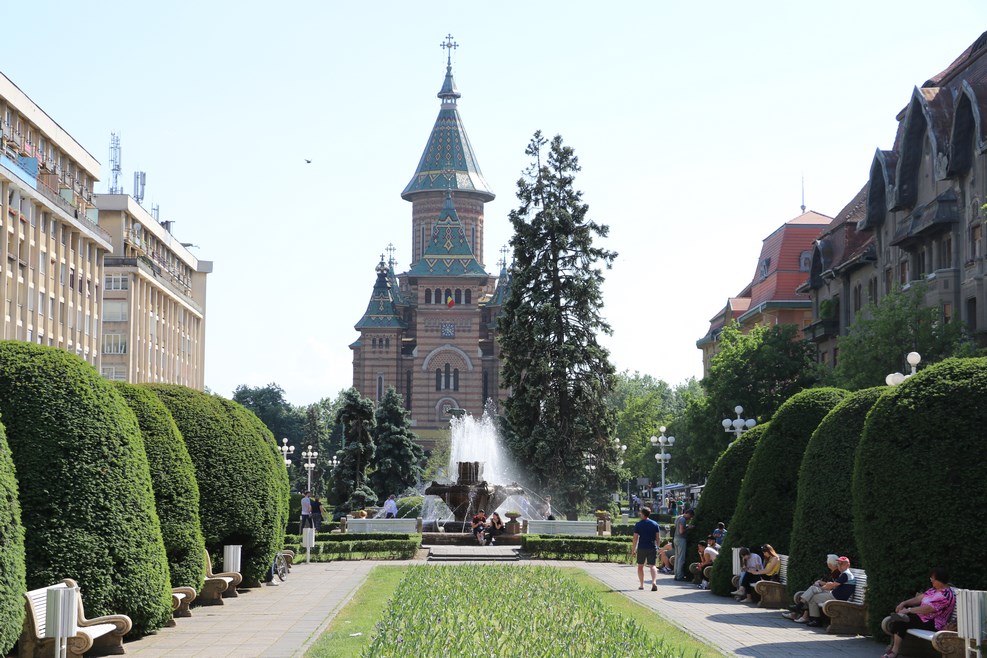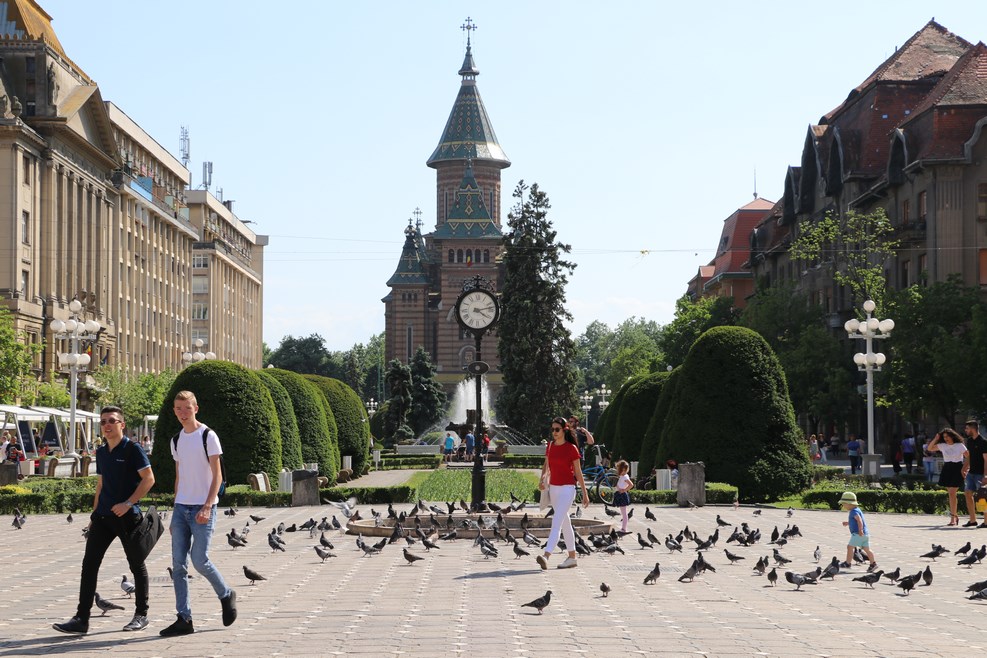 Через некоторое время приехали в город Тимишоара. Центральная площадь: