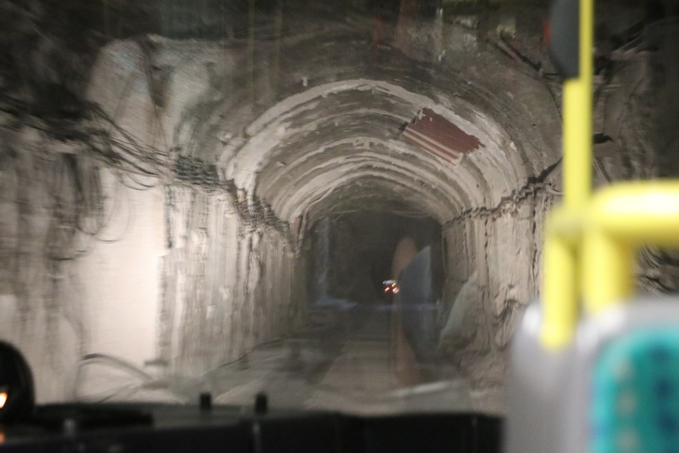 Вроде все посмотрели наверху, теперь садимся в автобус и спускаемся на нем под землю: