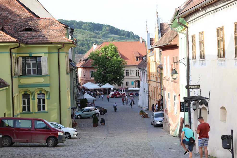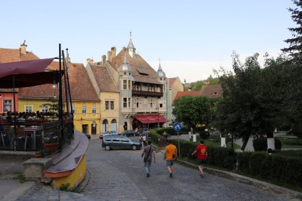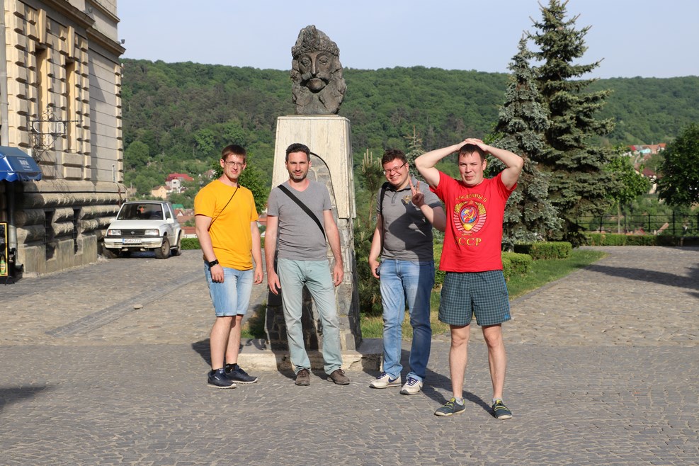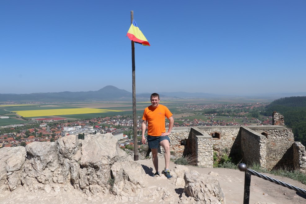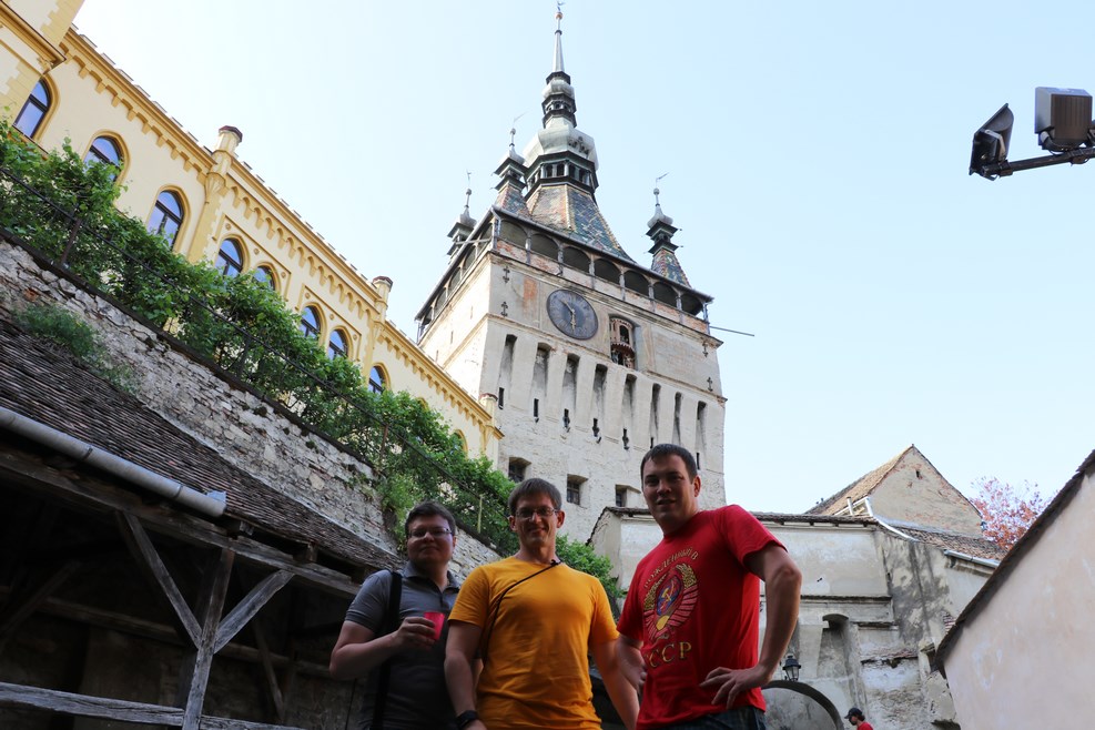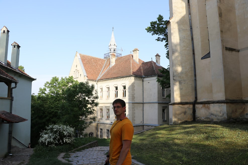 Сигишоара известен тем, что тут родился Влад Цепеш (так же известный как граф Дракула). Стоим около памятнику ему:
