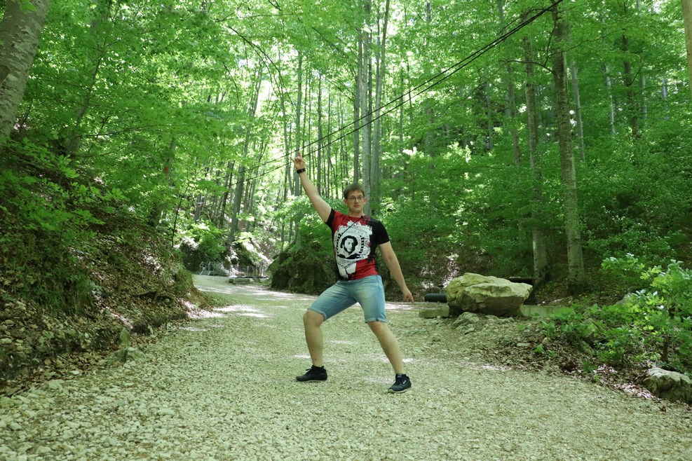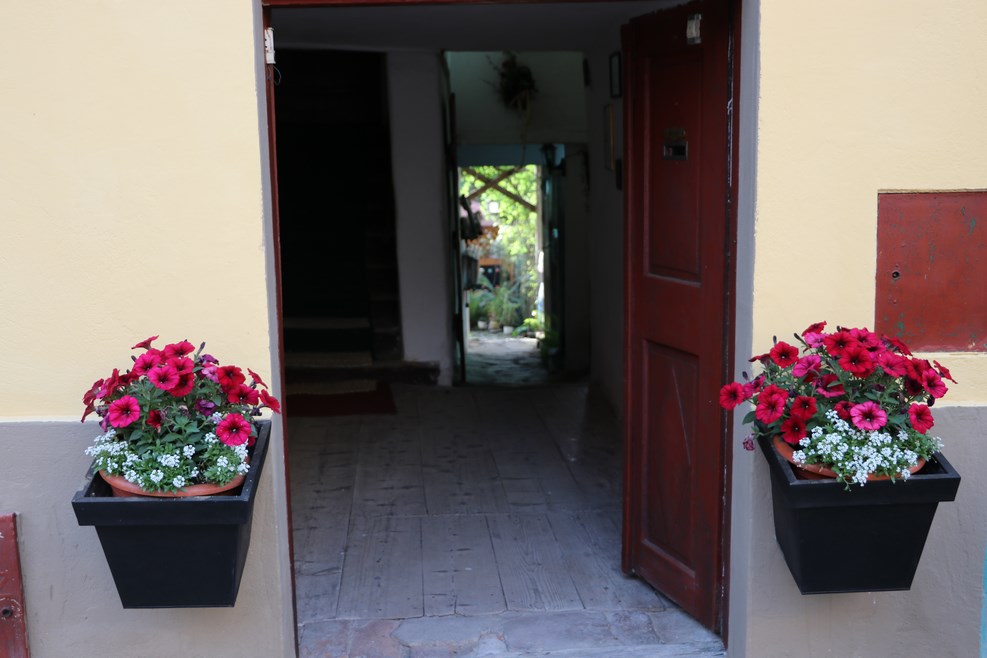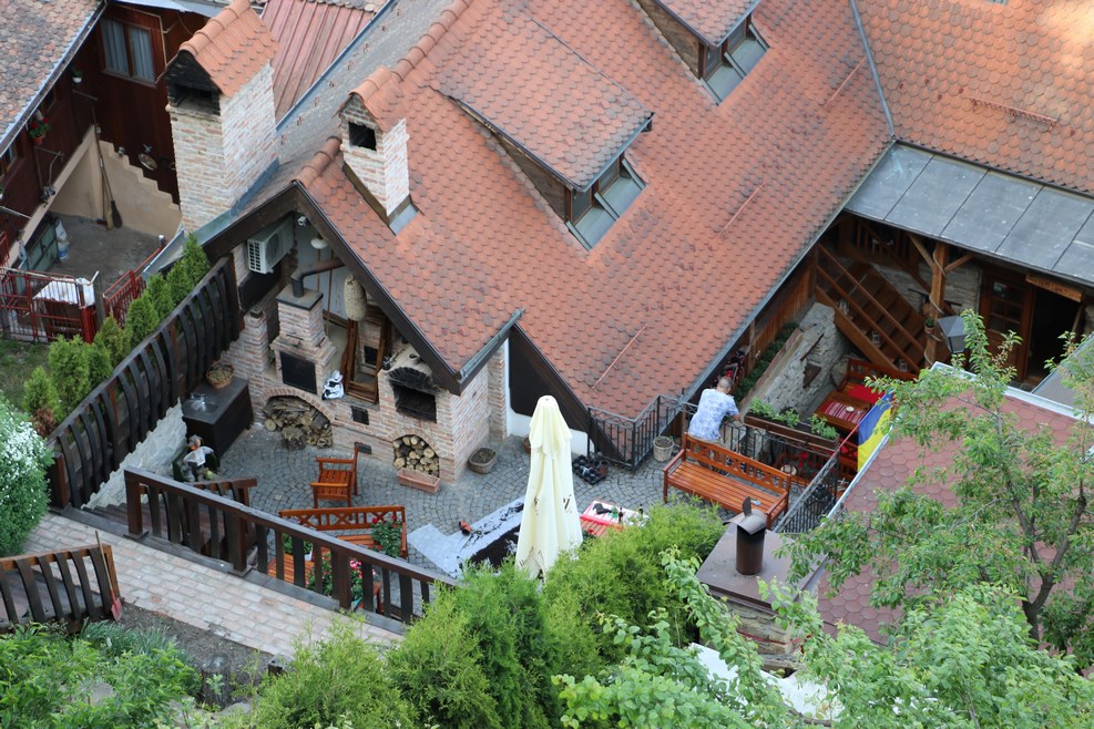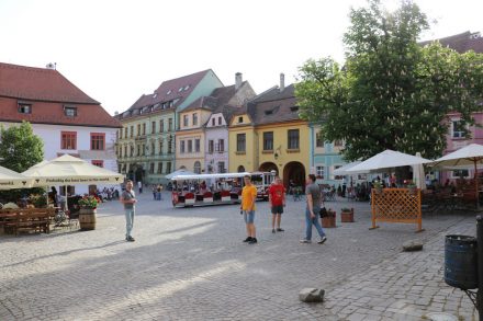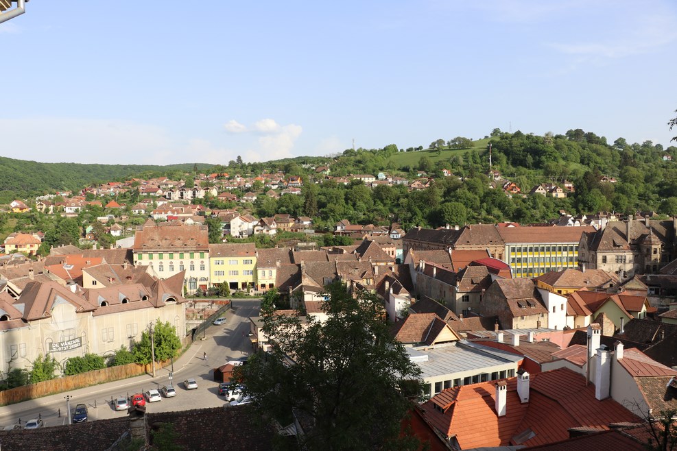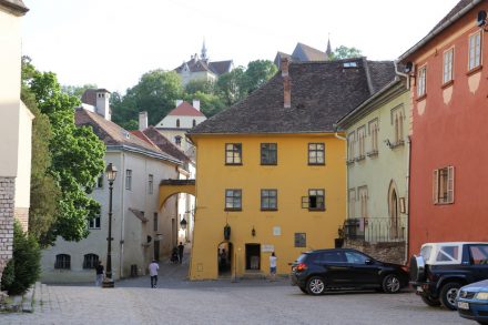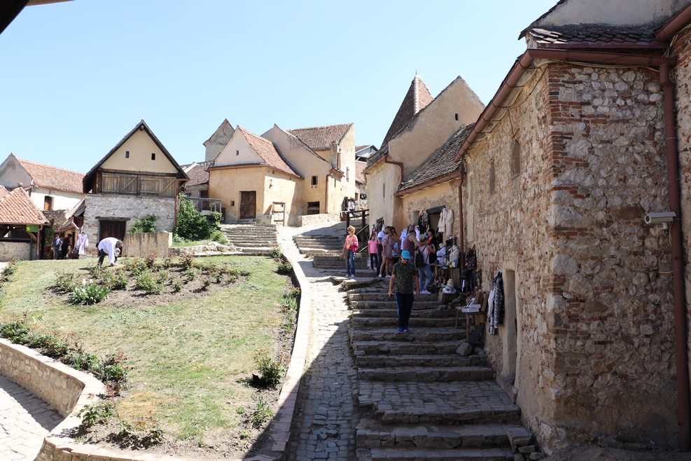 Сигишоара известен тем, что тут родился Влад Цепеш (так же известный как граф Дракула). Стоим около памятнику ему: