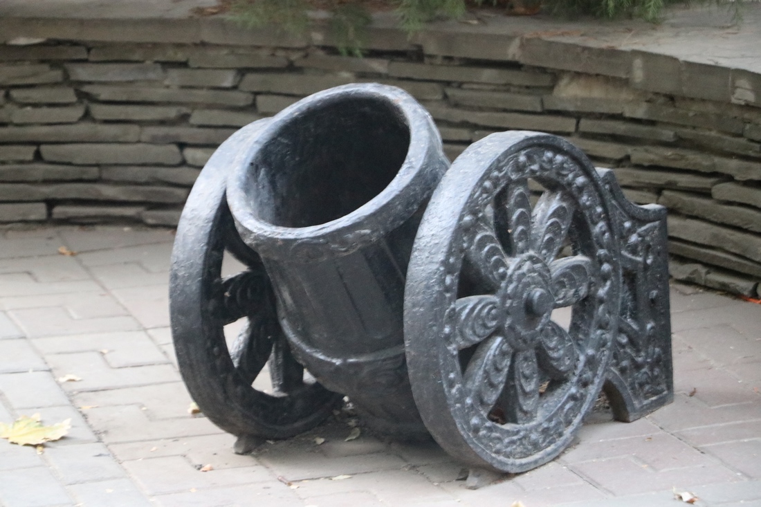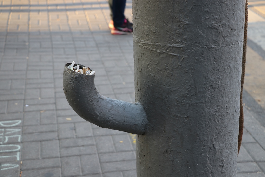 Не знаю для чего нужна эта часть фонарного столба, но горожане приспособили ее под пепельницу: