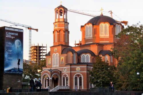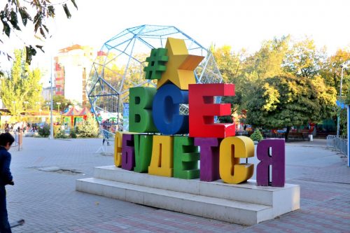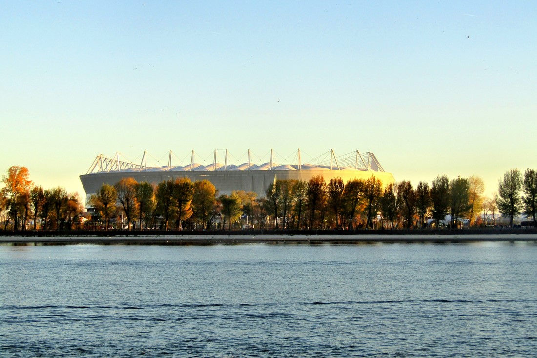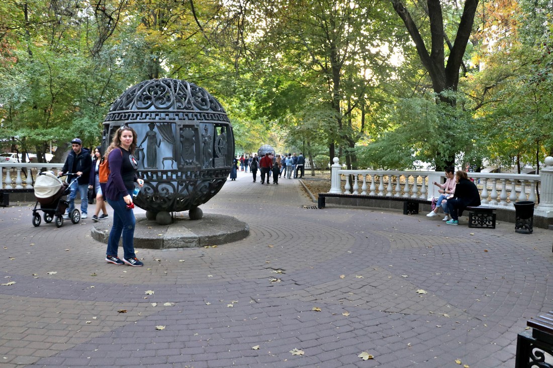 Ну ладно, хватит о еде. Теперь давайте заглянем в центральный парк им. Горького. На входе напоминание о том, что город предыдущим летом принимал чемпионат мира по футболу: